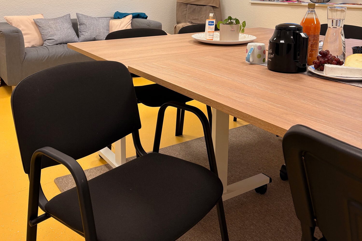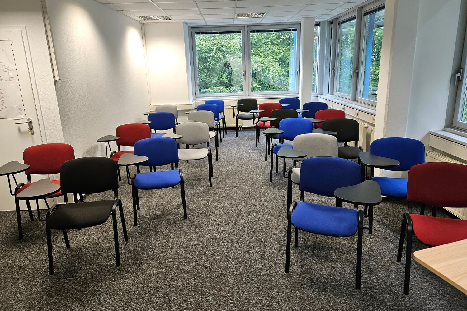 An den Stühlen des Iso Plus KS Modells sind Reihenverbinder angebracht, die es ermöglichen, sie zu verbinden und eine feste Reihe zu erstellen. Dies ist besonders dann praktisch, wenn den Stühlen ein fester Platz zugewiesen wird.