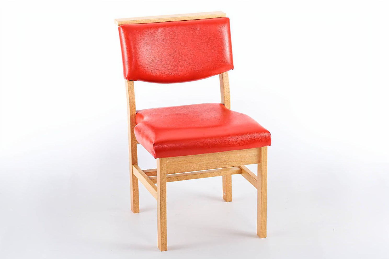 Das Modell Bamberg ist ein angenehmer Kirchenstuhl, der mit seinem zeitlosen Design besticht. Die hochwertig gepolsterte Sitzfläche wie auch die Rückenlehne sind in einem dunklen Rot gehalten. Kombiniert mit dem hellen Massivholz des Stuhlgestells sind sie nicht nur ästhetisch wunderschön, sondern auch zugleich passend und zurückhaltend für den Verwendungszweck des Gebetstuhles. Das Gestell besteht aus naturbelassenem massivem Buchenholz in einem ruhigen Naturton.