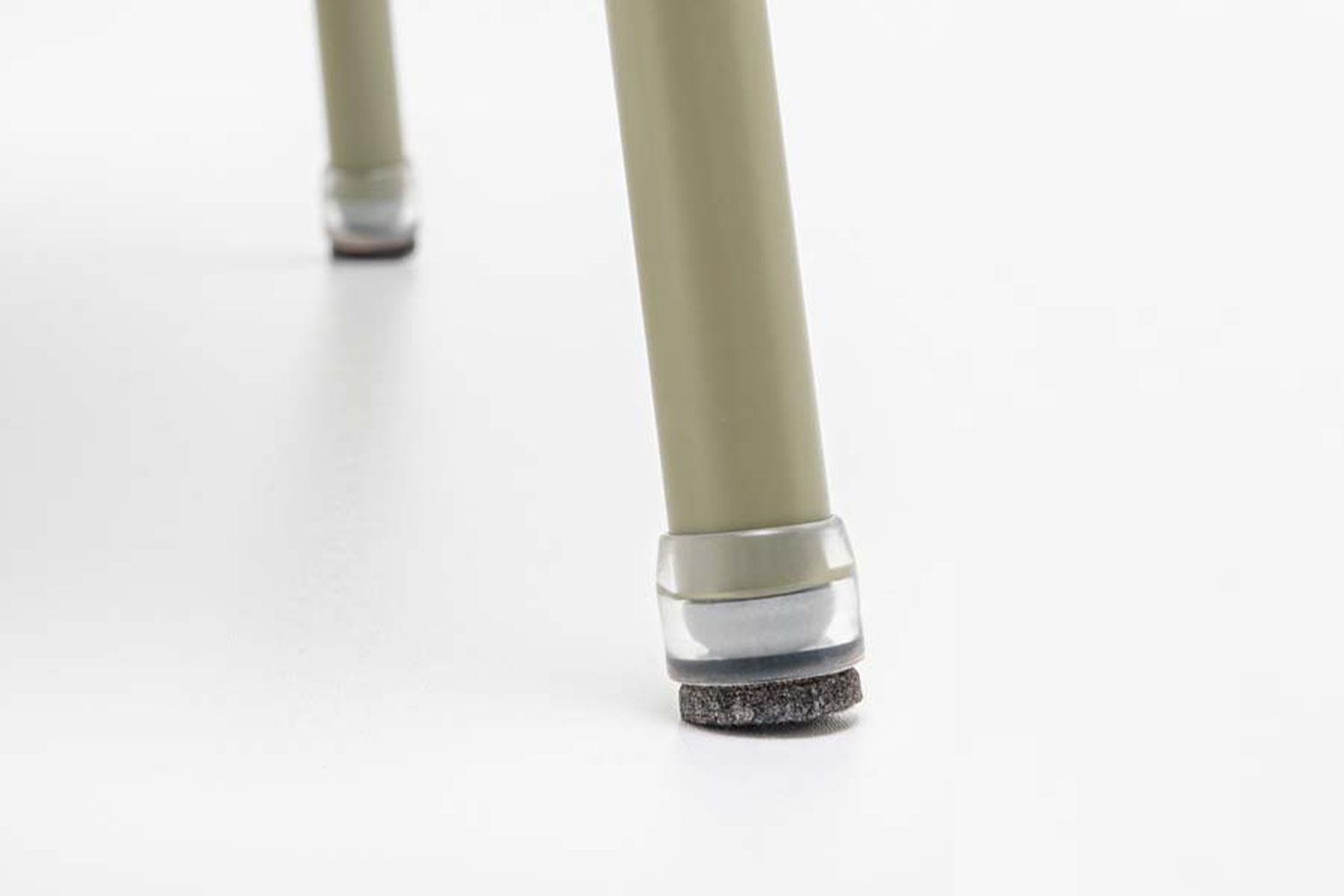 Über das Zubehör Gleiter stehen alternative Varianten, zum Beispiel Filz für Holz- und Designböden, zur Wahl. Die saubere Verarbeitung bis zur Unterseite des Hockergestells verhindert scharfe Kanten; selbst in Reihenaufstellung bleibt alles plan und ruhig.