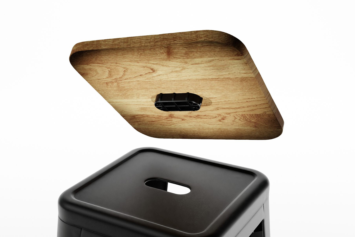 | Material | Stahl mit schwarzer Pulverbeschichtung, optional mit Ulmenholzsitzfläche in 31 x 31 cm |