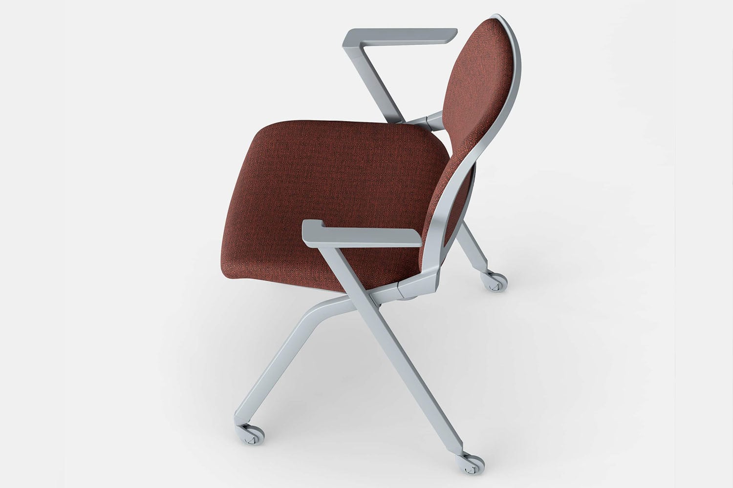 Die Vielzahl von verfügbaren Farben und Materialien ermöglicht es, diese stapelbaren Polsterstühle mit Armlehnen und Klappsitzen harmonisch in die bestehende Raumgestaltung zu integrieren.