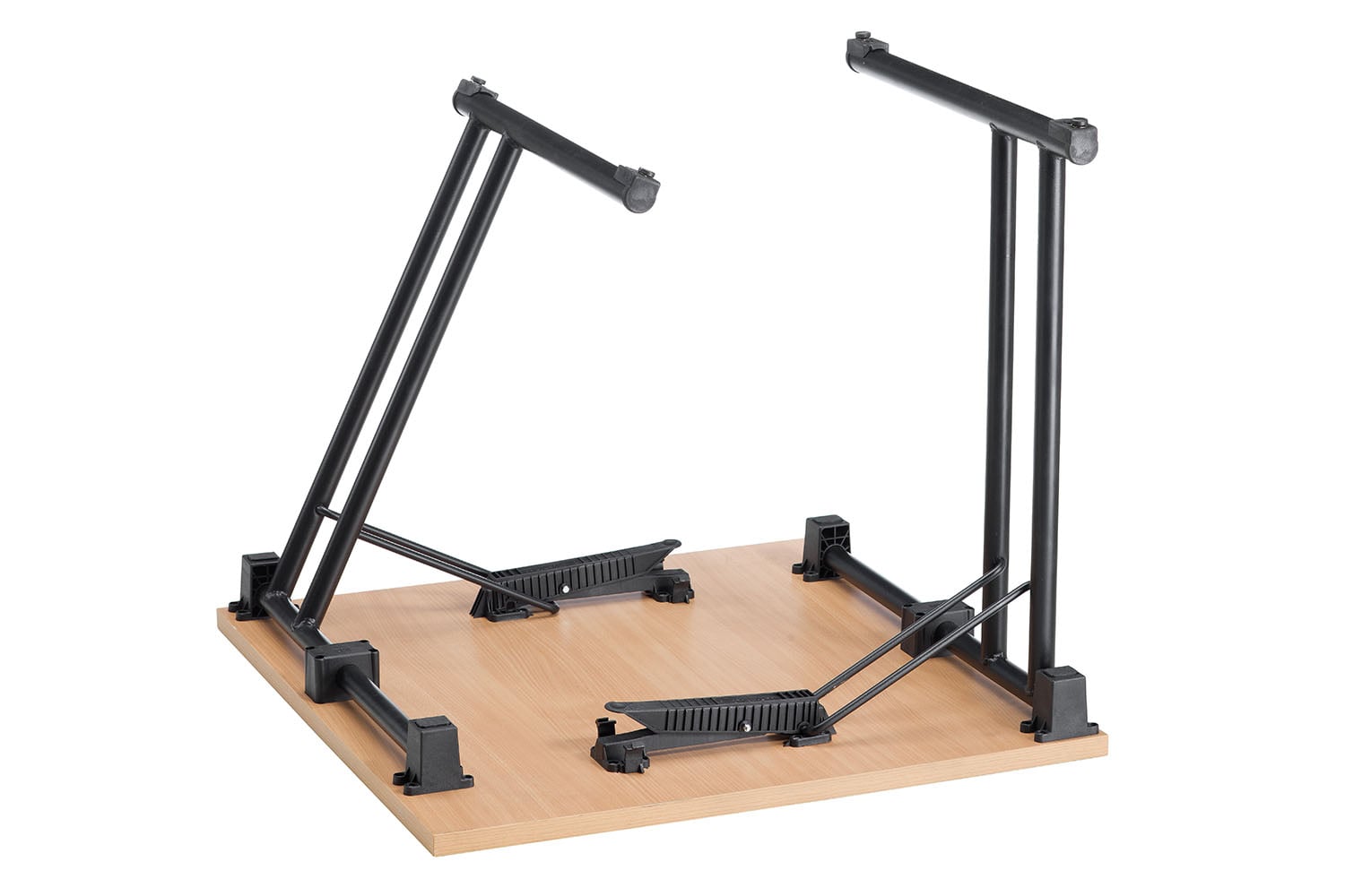 | Gestell | Hochwertiges schwarz lackiertes oder verchromtes Klappgestell (Horizontal Ø 35 x 1,4 mm, vertikal Ø 30 x 1,4 mm) mit höhenverstellbaren, bodenanpassenden Gleitern |